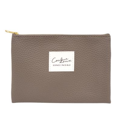 落ち着いたカラーのフラットポーチ。カバンの中の細々したアイテムを入れておくのにちょうどいいサイズです。コスメの購入特典などにおすすめです。